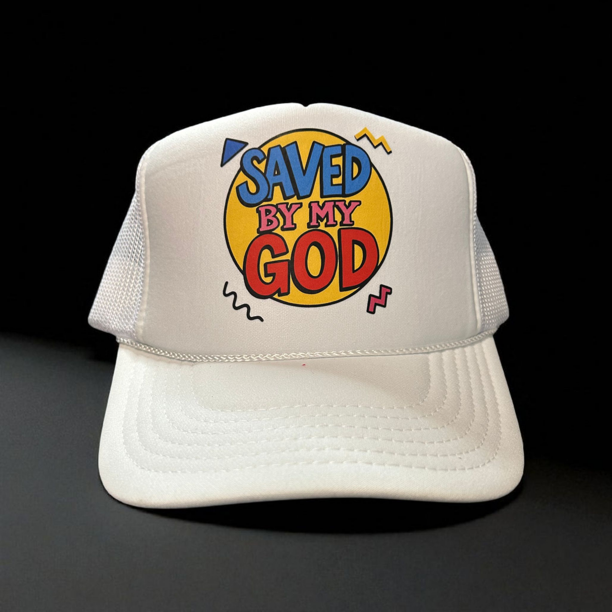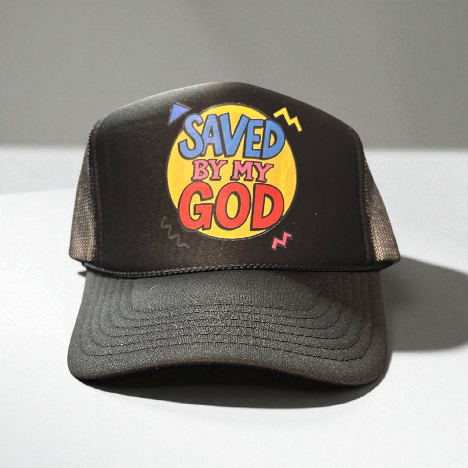 “Saved By My God Hat – a stylish Christian streetwear cap that blends faith, fashion, and comfort. Wear your testimony with bold urban style.”